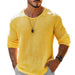 The Men's Casual Cotton Linen Round Neck Loose Long Sleeve T-Shirt is the epitome of comfort and relaxed style. With its soft cotton-linen blend, this t-shirt provides a breathable and lightweight feel that's perfect for everyday wear. The round neck design adds a classic touch, while the loose fit ensures ease of movement and a laid-back silhouette. Ideal for layering or wearing on its own, this versatile t-shirt is perfect for casual outings, lounging at home, or even running errands.
