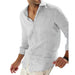 Introducing our Men's Casual Solid Color Cotton Linen Lapel Collar Breathable Long Sleeve Shirt, a versatile and comfortable piece that combines the classic appeal of cotton with the breathability of linen.