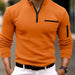 Introducing our Men's Casual Solid Color Zipper Polo Shirt, a modern take on a classic wardrobe staple.