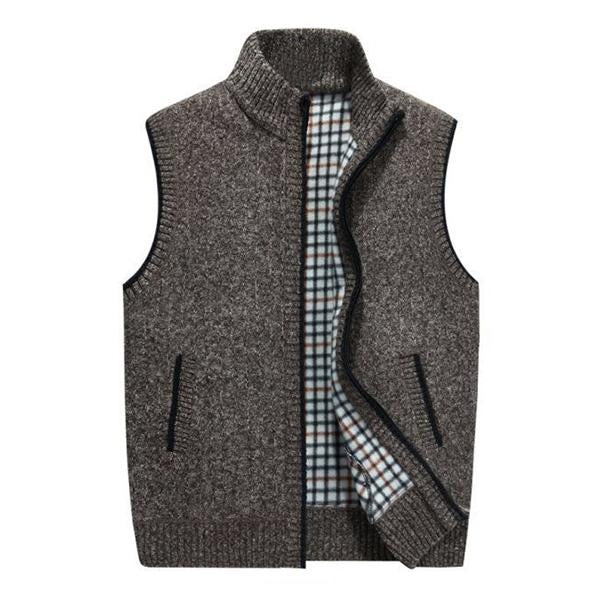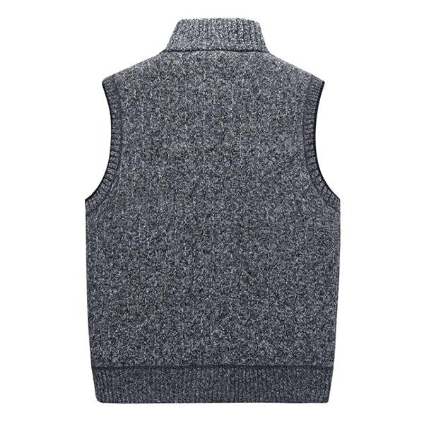 This men's stand-collar fleece knit vest is made of a blended fabric that is both durable and comfortable, providing warmth and comfort in the autumn and winter seasons. Its practical zip design makes it easy to put on and adjust.