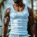 Introducing our Men's Casual Waffle U-neck Slim Fit Tank Top, a versatile and stylish addition to your casual wardrobe. This tank top features a unique waffle texture and a slim fit design, making it perfect for layering or wearing on its own. Ideal for workouts, casual outings, or lounging at home, this tank top offers a blend of comfort and modern style. Here’s a detailed breakdown of its key features:
