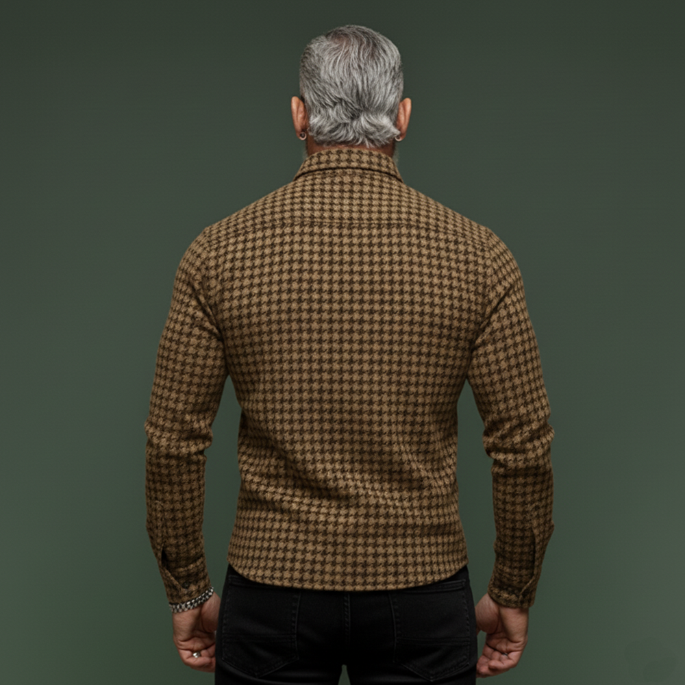 The Men’s Classic Casual Houndstooth Wool Long-Sleeved Shirt offers a refined blend of heritage styling and everyday practicality. With its houndstooth pattern, wool blend warmth, and versatile silhouette, it serves as a versatile top for smart-casual to relaxed outfits across transitional seasons.
