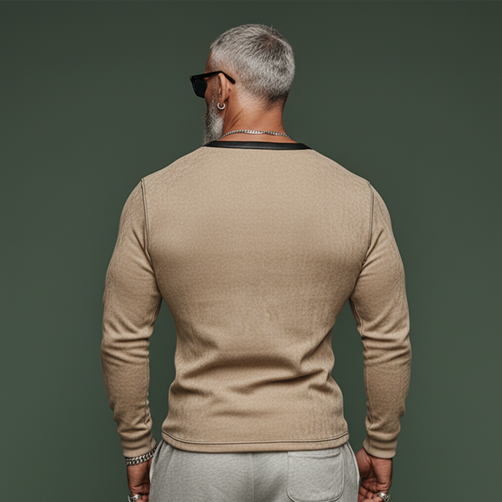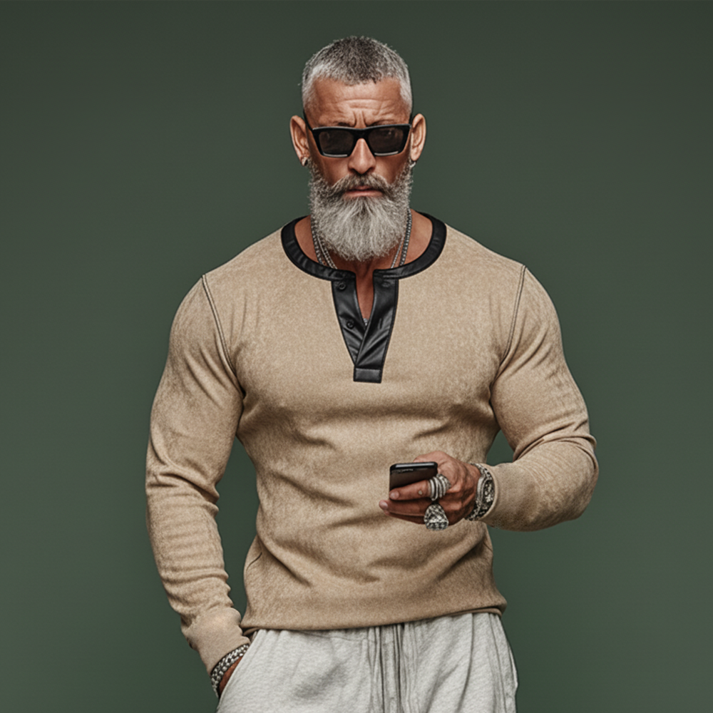 The Men’s Classic Casual PU Leather Henley Collar Slim Fit Faux Suede Long-Sleeve T-Shirt offers a bold fusion of tactile luxury and modern tailoring. With its Henley collar, slim silhouette, and PU leather finish, it’s a versatile piece for layering or wearing solo in casual, smart-casual, and urban-inspired outfits.