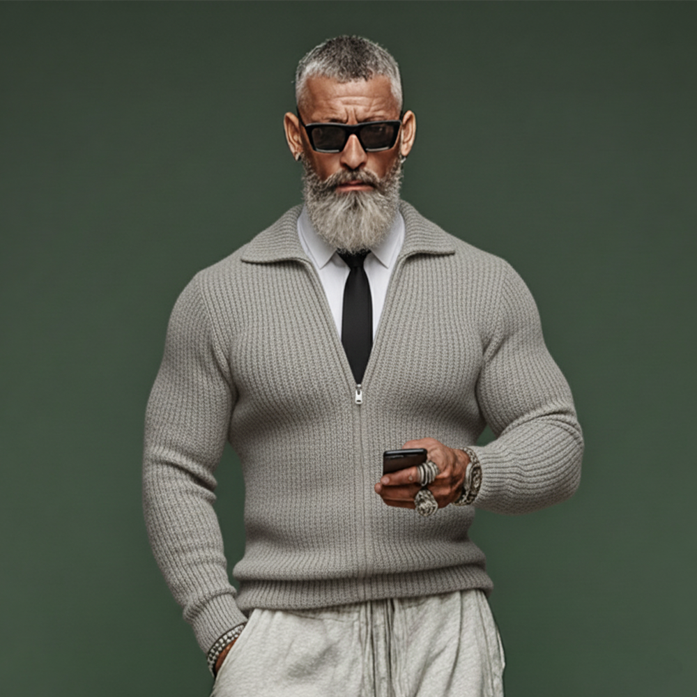 The Men’s Classic Casual Rugged Style Lapel Zip-up Slim-fit Knit Cardigan offers a balanced combination of rugged charm and refined fit. Its lapel collar, zip-front, and slim silhouette make it a dependable layering piece for casual, smart-casual, and transitional outfits across seasons.