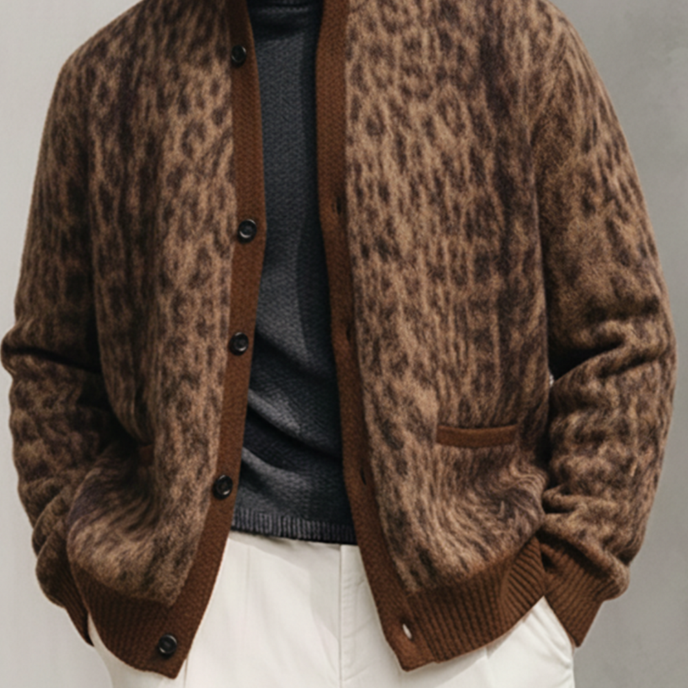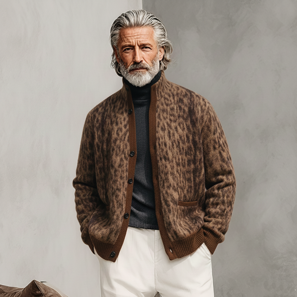 The Men’s Classic Casual Stand Collar Leopard Print Cardigan merges a bold animal-print motif with a timeless cardigan silhouette. Designed as a versatile layering piece, it offers a comfortable knit, a modern stand collar, and eye-catching detail that elevates casual and smart-casual looks alike. Built for everyday wear, this cardigan brings a touch of personality to any wardrobe while maintaining easy-care practicality.
