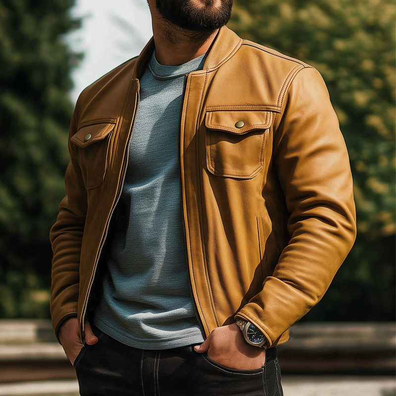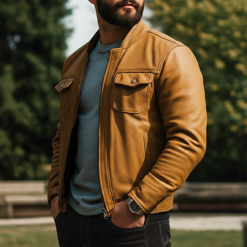 Bold Orange Hue: Unique and attention-grabbing color adds a modern twist to the classic motorcycle jacket.