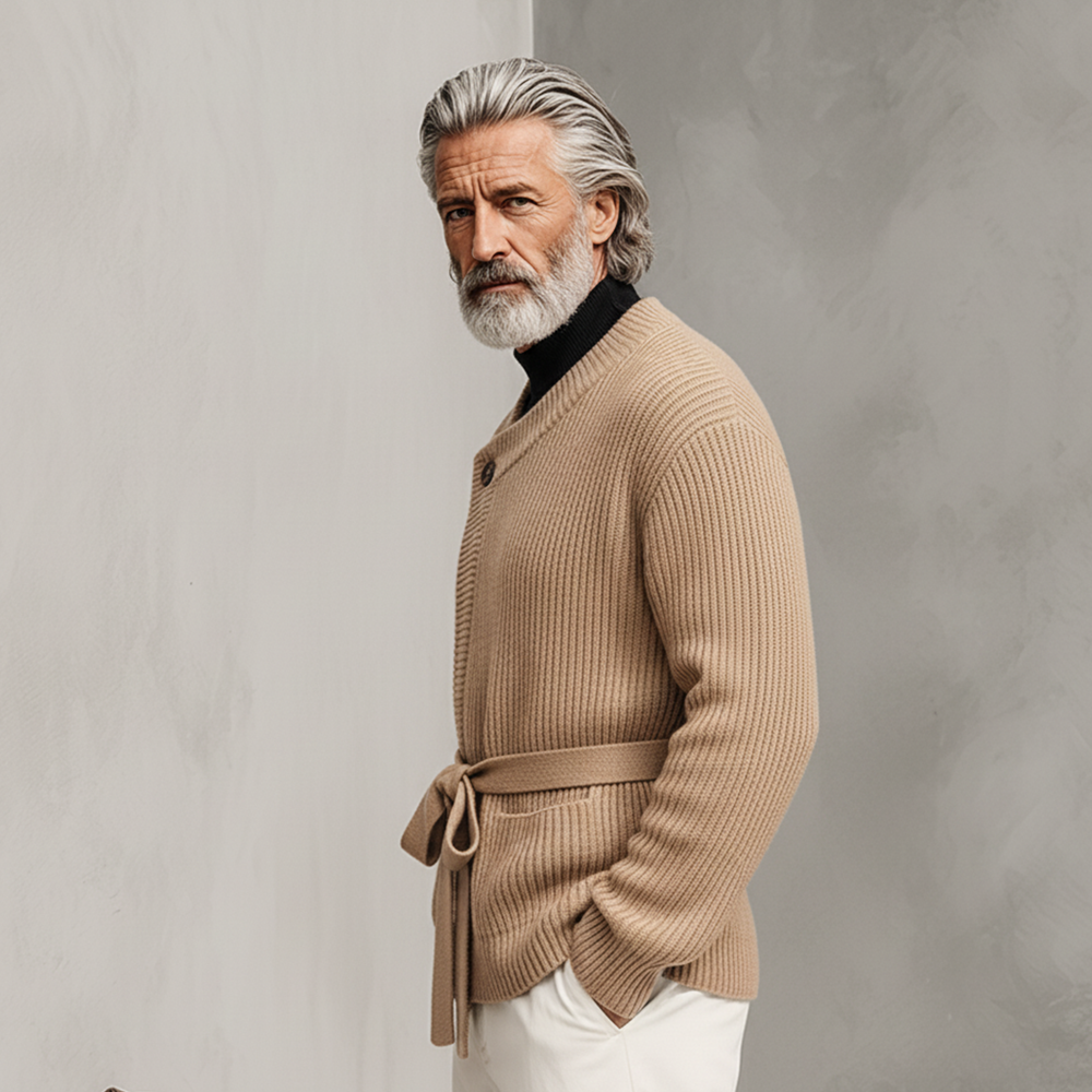 The Men’s Classic Retro Diagonal Placket Belted Knit Cardigan combines vintage-inspired detailing with modern comfort. Featuring a distinctive diagonal placket, a belt at the waist for a defined silhouette, and a textured knit, this cardigan offers warmth, structure, and timeless charm for casual to smart-casual outfits across transitional seasons.