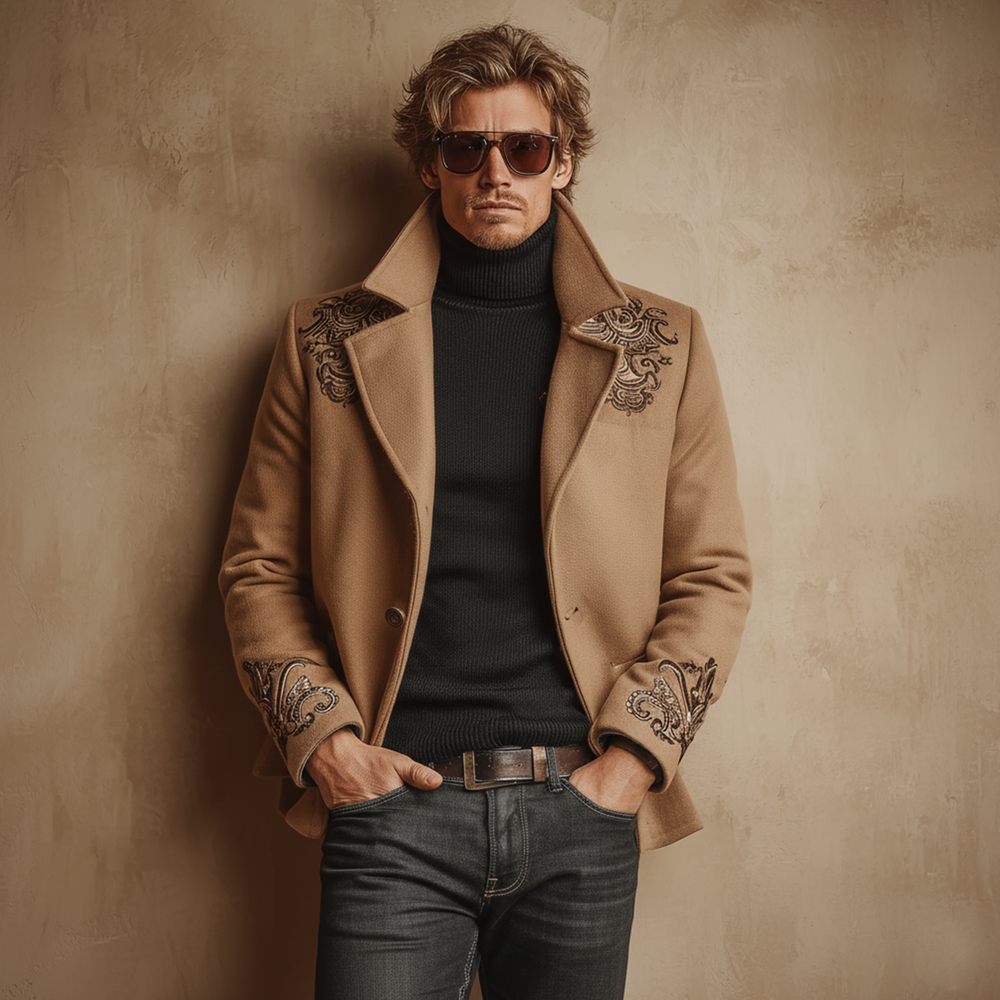 Product Name: Men’s Classic Retro Lapel Embroidered Faux Wool Jacket