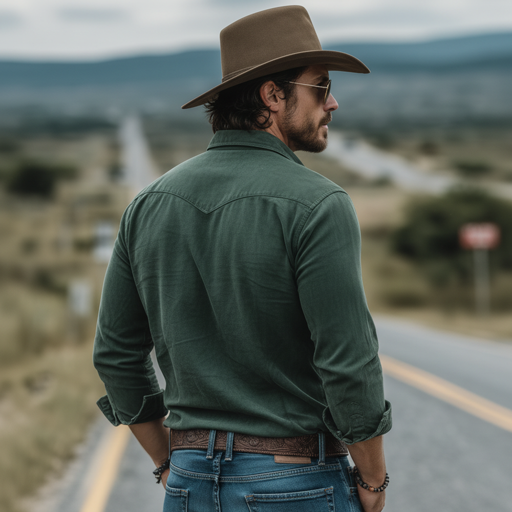 The Men’s Classic Retro Western Style Embroidered Faux Suede Slim Fit Long-Sleeve Shirt fuses vintage Western charm with contemporary tailoring for a versatile top. Crafted from soft faux suede, it offers a refined texture and a structured yet comfortable silhouette. Embroidered detailing adds artisanal character, while a slim fit and long sleeves deliver a modern, streamlined look suitable for smart-casual to casual-western outfits. Designed for daily wear and transitional seasons, it pairs well with denim, chinos, or rugged fabrics to create a polished yet relaxed wardrobe staple.