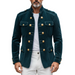 The Men's Corduroy Solid Color Stand Collar Button-Trimmed Slim Fit Jacket is a must-have for the fashion-forward man. Combining functionality with style, this jacket will keep you looking sharp and feeling comfortable regardless of the occasion. Add this timeless piece to your wardrobe today.