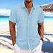 Product Name:Men's Cotton Linen Stripe Print Loose Short Sleeve Lapel Shirt