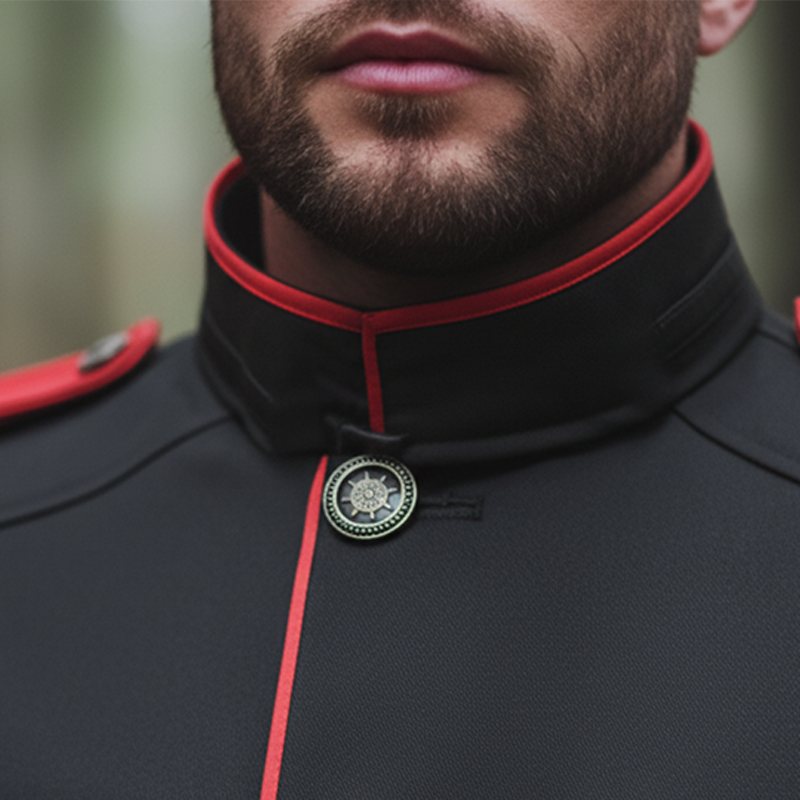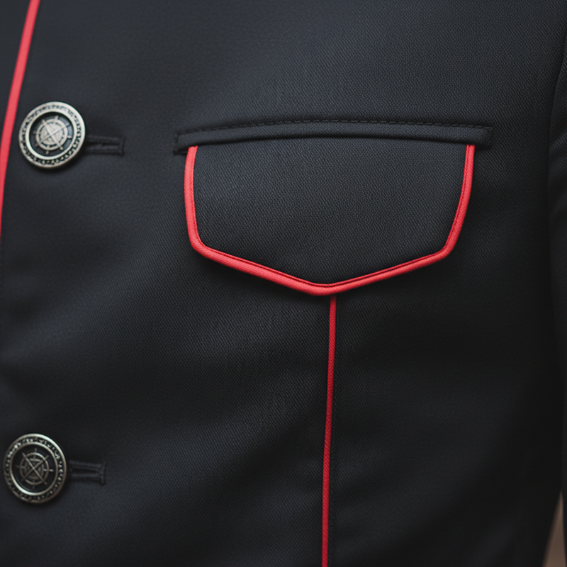 Collar: Stand collar design that offers a sleek and polished look, adding a touch of sophistication.