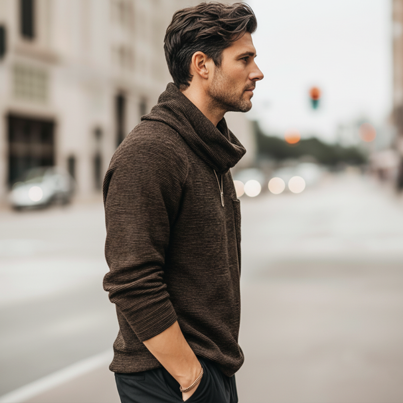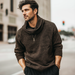 Men's Fashion Stacked Neck Ribbed Textured Pullover Sweatshirt
