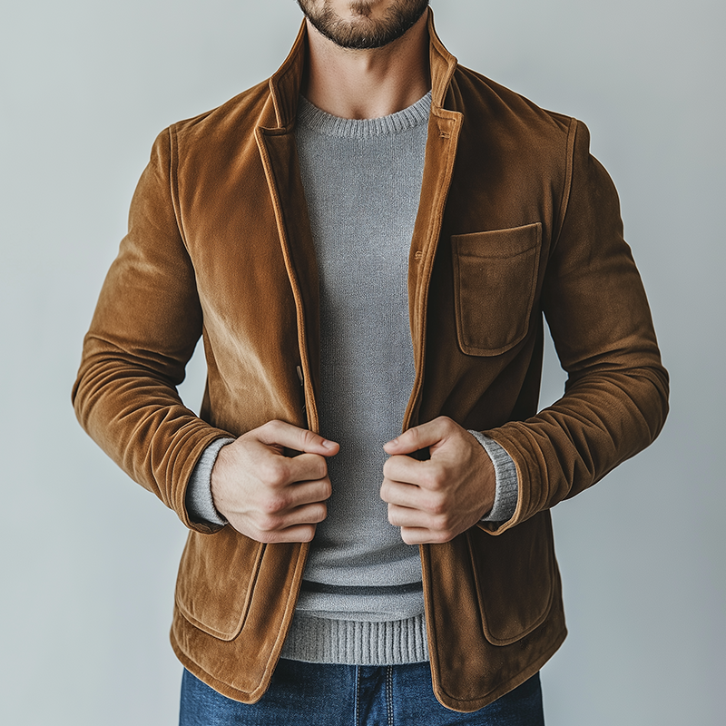 The Men's Retro Casual Faux Suede Stand Collar Jacket is a perfect addition to any wardrobe, offering style, comfort, and versatility. Its classic design with modern enhancements ensures that it will remain a staple piece for years to come.