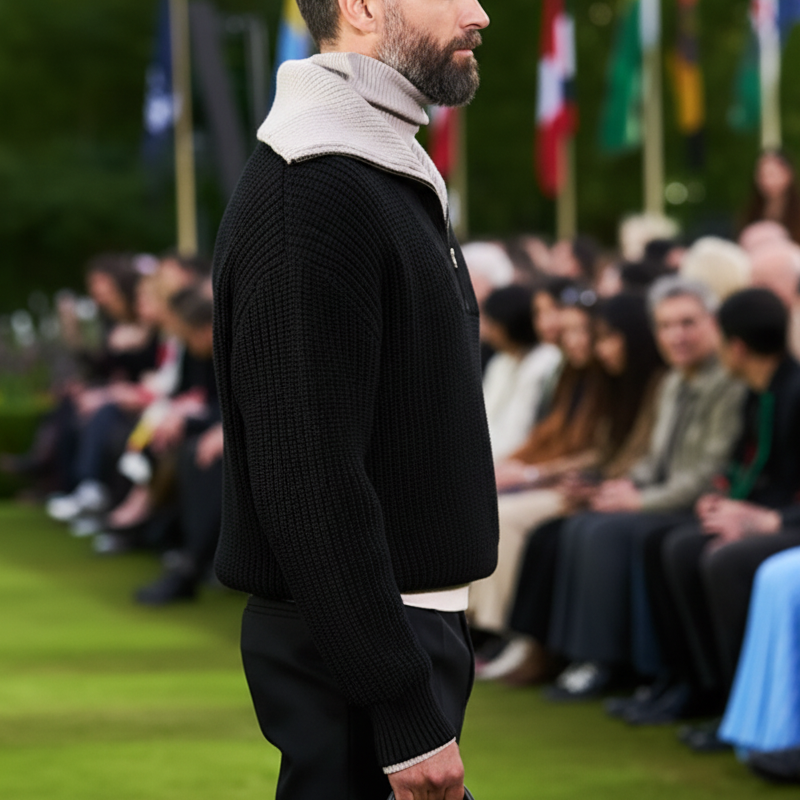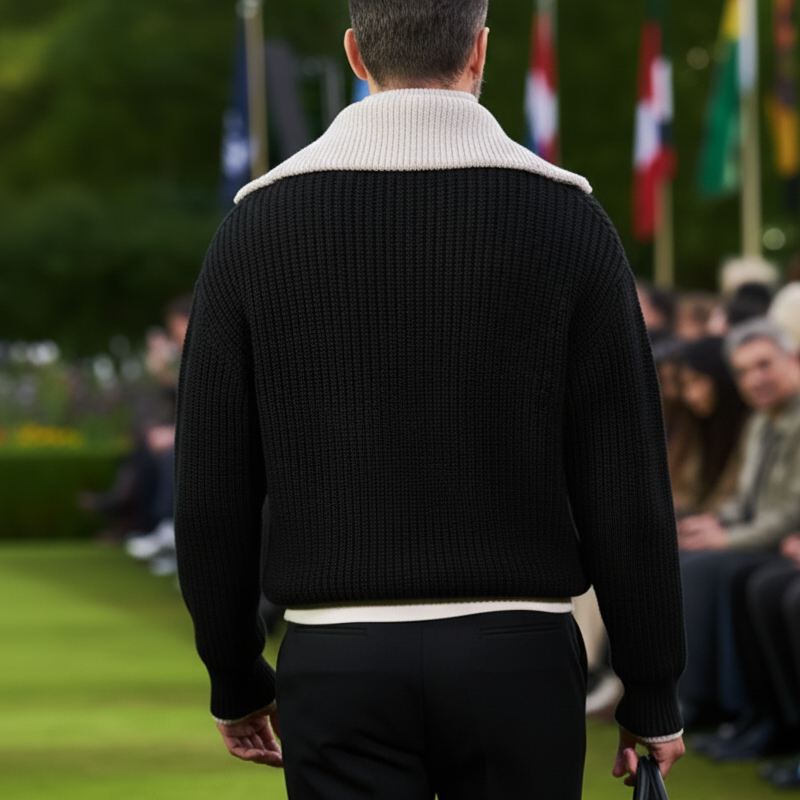 Men's Retro Design Zipper Collar Knit Sweater