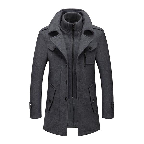 Woolen is a type of yard made from carded wool. Woolen yarn is soft, light, stretchy, and full of air. It is thus a good insulator, and makes a good knitting yarn. Our men’s retro double collar woolen coat is made of soft woolen fabric, which protects you from light wind and rain. Added with multiple layers of thermal underwear, this wool-blend coat can provide extra warmth in cold weather.