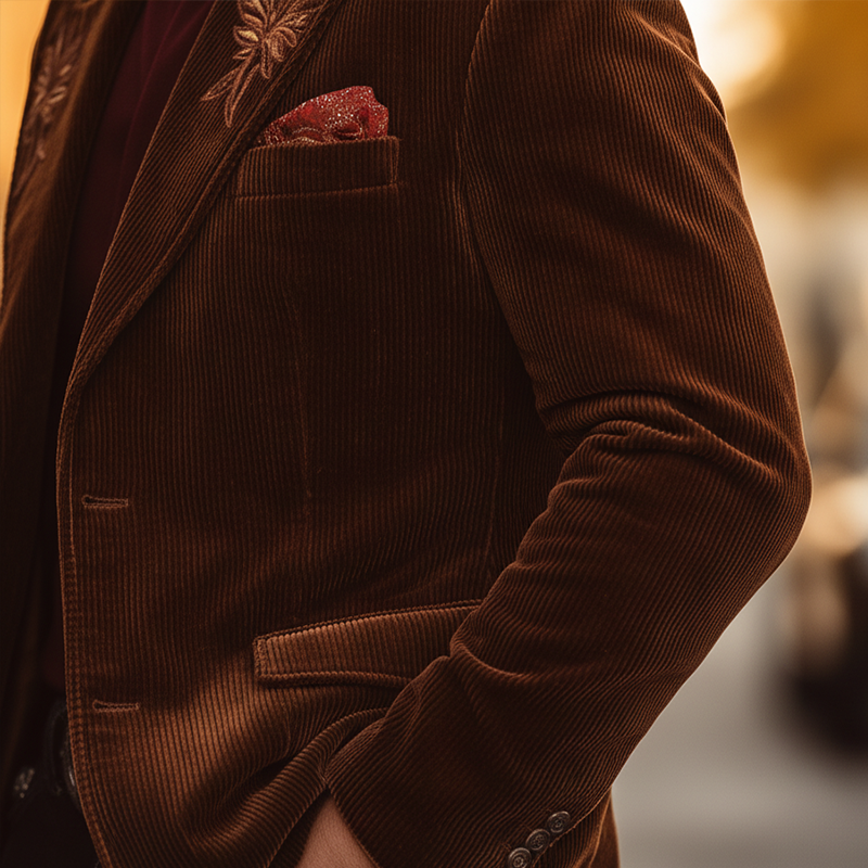 The Men's Retro Minimalist Embroidered Corduroy Suit Jacket is an essential addition to any wardrobe for those who appreciate a combination of classic style and contemporary design. Elevate your everyday look or make a statement at formal events with this versatile piece.