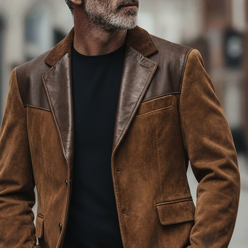 The Men's Retro Patchwork Faux Suede Lapel PU Blazer is the perfect combination of vintage and contemporary styles, offering versatility and sophistication for the modern man. Its unique design and luxurious materials make it a standout piece in any collection.
