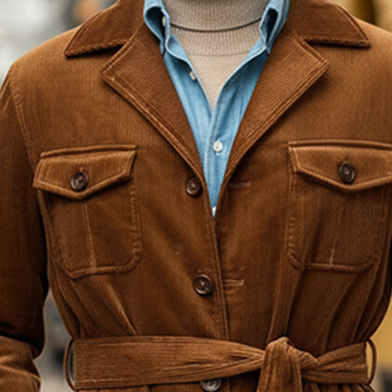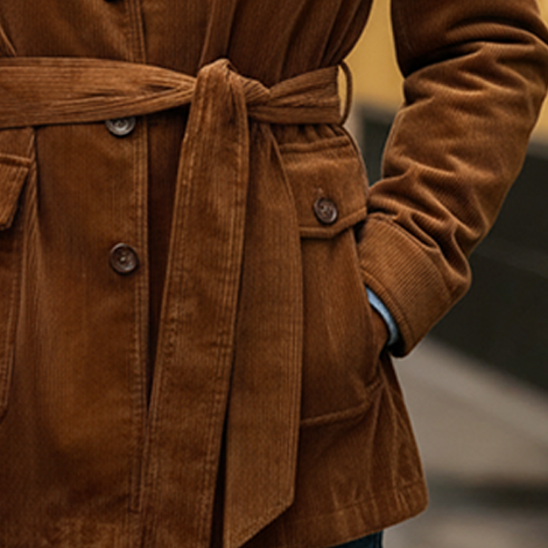 Corduroy Fabric: Made from high-quality corduroy, this jacket offers both a soft texture and a sturdy construction, ensuring durability and comfort.
