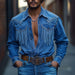 Dare to stand out with this eye-catching shirt that marries traditional craftsmanship with contemporary style. Add the Men's Retro Western Cowboy Tassel Stitching Denim Long Sleeve Shirt to your collection today and elevate your wardrobe with a touch of the Wild West!