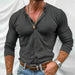 Our Solid Color Striped Round Neck Long Sleeve Shirt is made with meticulous attention to detail. The precise stitching and reinforced seams guarantee durability and a refined finish. The stripes are carefully woven into the fabric, ensuring they remain vibrant and intact. The round neck is neatly finished, adding to the overall sleek and stylish design of the shirt.