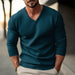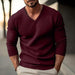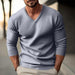 Whether you're heading to the gym, meeting friends, or simply enjoying a day out, our Men's solid color V-neck long-sleeved knitted pullover sweater will keep you looking stylish and feeling comfortable. Choose from a range of colors and sizes to find your perfect fit!