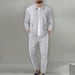 Elevate your style with our Men's Solid Color Waffle Lapel Jacket and Pants Set. The waffle-textured fabric offers a unique visual appeal while ensuring breathability and comfort. The tailored jacket with a lapel collar exudes sophistication, making it suitable for a variety of occasions. Paired with straight-leg pants, this set strikes the perfect balance between style and comfort. Whether worn together or mixed and matched with other wardrobe pieces, this ensemble is a versatile addition to your collection. Embrace the timeless elegance of solid color and waffle texture for a look that's both classic and contemporary.