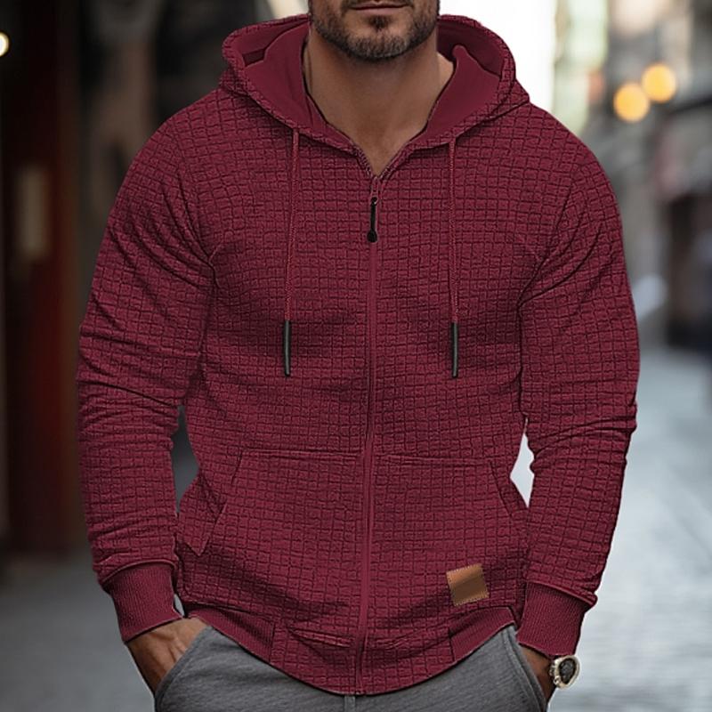Introducing our Men's Solid Waffle Long Sleeve Hooded Jacket—an epitome of comfort, style, and modern design. This jacket features a classic solid color, a cozy hood, and is crafted from a textured waffle fabric for ultimate comfort. Tailored for both fashion and functionality, it's a versatile addition to your wardrobe, suitable for various seasons and occasions.
