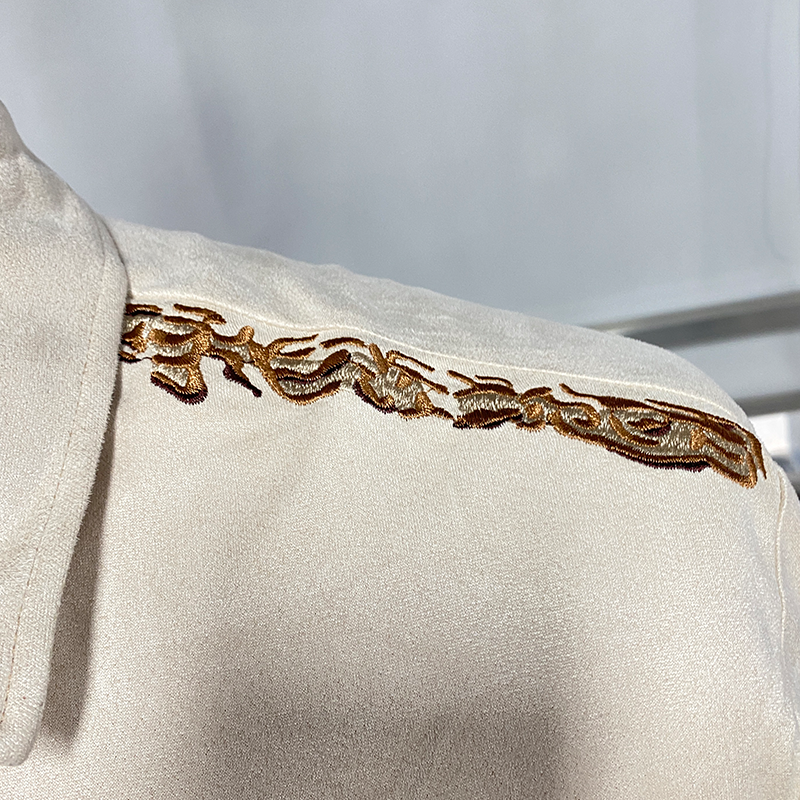Western-Inspired Aesthetic: Designed with classic cowboy influences, this shirt features a lapel collar, tailored silhouette, and embroidered details that nod to traditional Western attire.