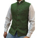 This vest is made from high-quality tweed fabric that is both tactile and durable, exuding a sense of robust masculinity. The black buttons and elegant stand collar provide the perfect finishing touch, giving the vest a vintage yet fashionable appearance.