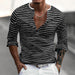 Imagine a crisp autumn morning, the air tinged with the promise of a new day. As you reach for your wardrobe, your fingers instinctively gravitate towards this Henley collar shirt. Its striped pattern, reminiscent of vintage charm, whispers of adventures past and those yet to come.