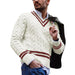 Product Name: Men's Casual V-Neck Colorblock Striped Loose Knit Sweater