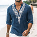 Product Name: Men's Vintage Casual Embroidered Cotton and Linen Henley Collar Long Sleeve Shirt