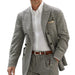 This is a men's retro-style double-breasted suit, mainly gray, showing a classic and fashionable style. The appearance of the suit adopts a simple plaid design, which adds a touch of vitality and personality.