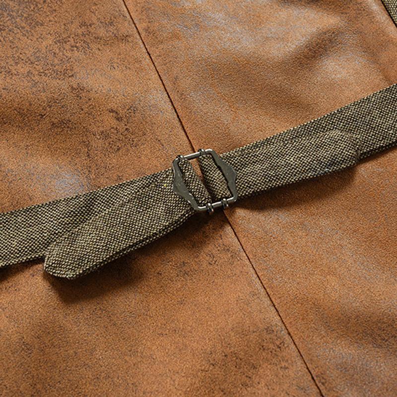 The front of the vest is made from a soft polyester blend for durability and comfort, while the back is crafted from high-quality leather fabric for a vintage, worn-in look. Each vest is handmade by our skilled artisans to ensure a perfect fit.