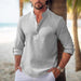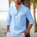 Elevate your style with our Men's Waffle Stand Collar Rolled Sleeve Long Sleeve Shirt – the perfect blend of comfort, style, and versatility for any occasion.