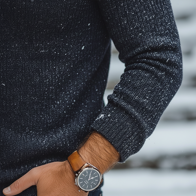 This sweater pairs well with jeans or chinos for a casual look, and can be layered under a blazer for a more sophisticated ensemble. For a complete winter look, consider adding a scarf and leather boots.
