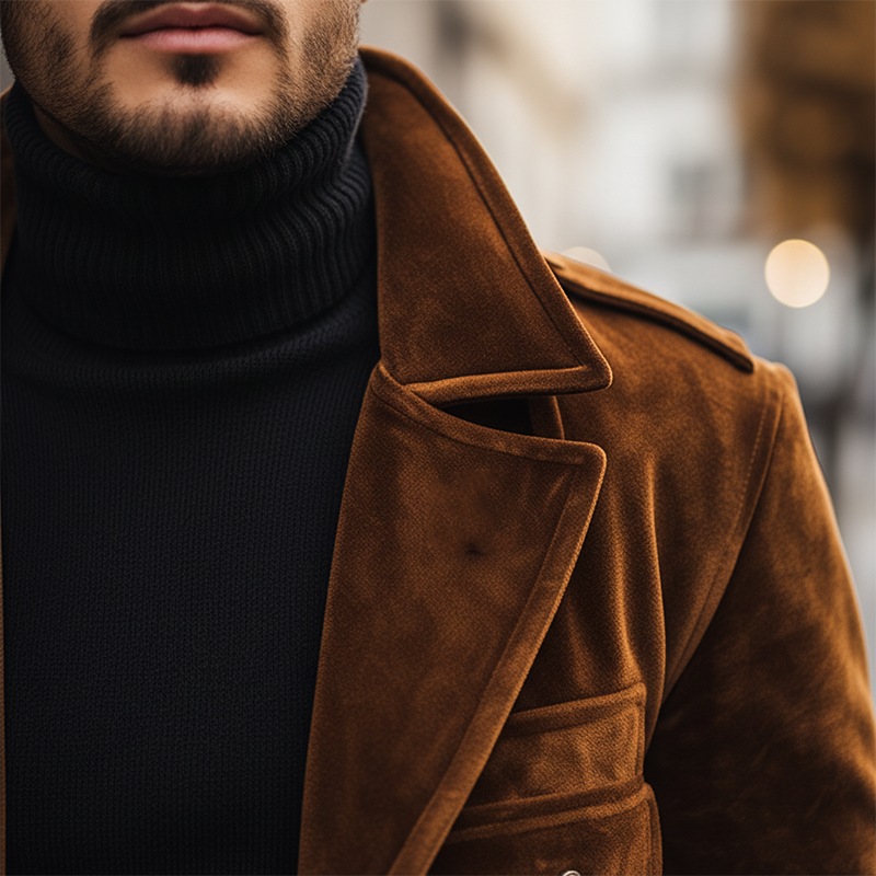 This Men's Winter Retro Glossy Velvet Lapel Mid-Length Coat is a perfect blend of style and warmth. Crafted from high-quality glossy velvet, the coat embodies a retro charm while providing a touch of sophistication to your winter wardrobe.